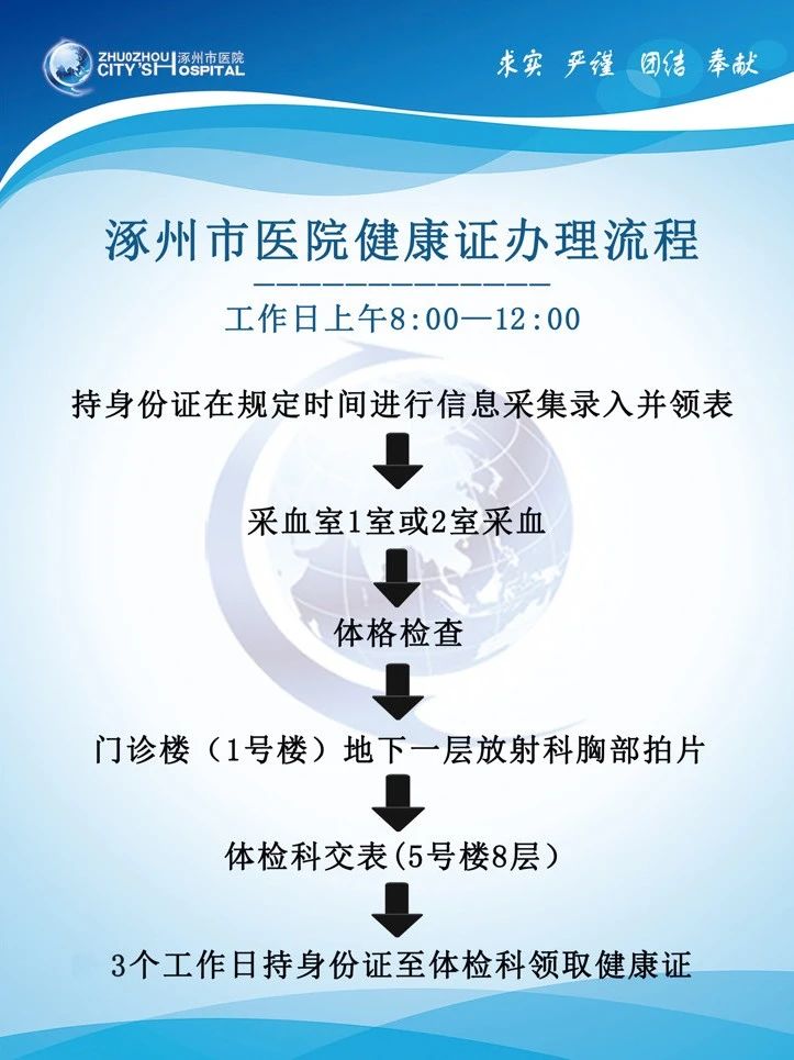根据涿州市应对新冠肺炎疫情工作领导小组指示精神,为方便各行业从业者又快又安全地办理健康证,涿州市医院特别为您提供了一份涿州市医院健康证办理步骤,请您参考: