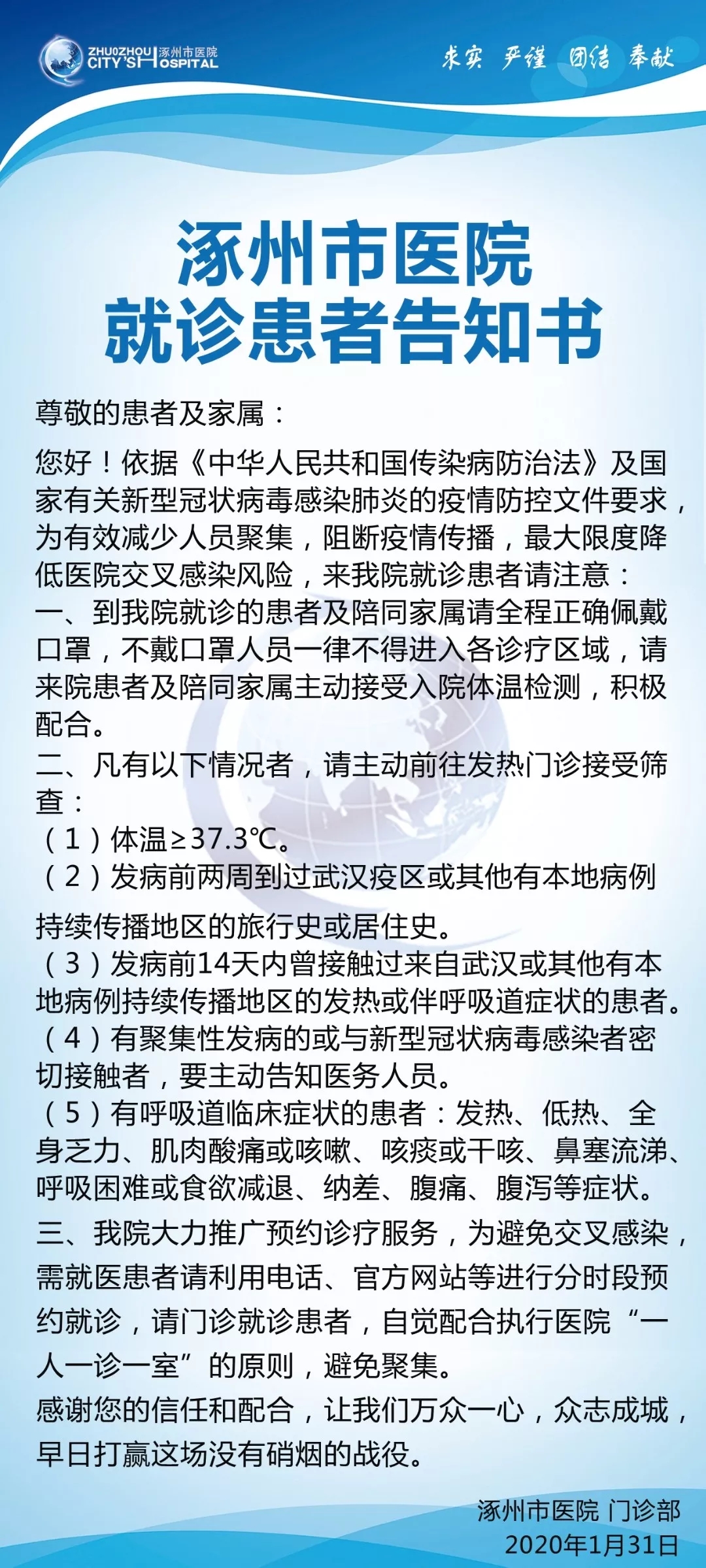 涿州市医院就诊患者告知书