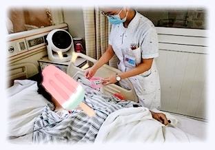 为昏迷的病人翻身、拍背、换床单被褥都是这些白衣天使的责任。每一位值班护士都有这样一个愿望:要把自己负责的病人护理得干净清爽。有些患者由于疾病限制,需要绝对卧床,长期局部组织受压,为了避免皮肤破损,护士会熟练的为其定时翻身,为患者喂水,喂饭。经常有老人由衷地说:“太感谢你们了!”每每听到这样的赞美,她们的心里便暖洋洋的,感觉所有的付出都是值得的。