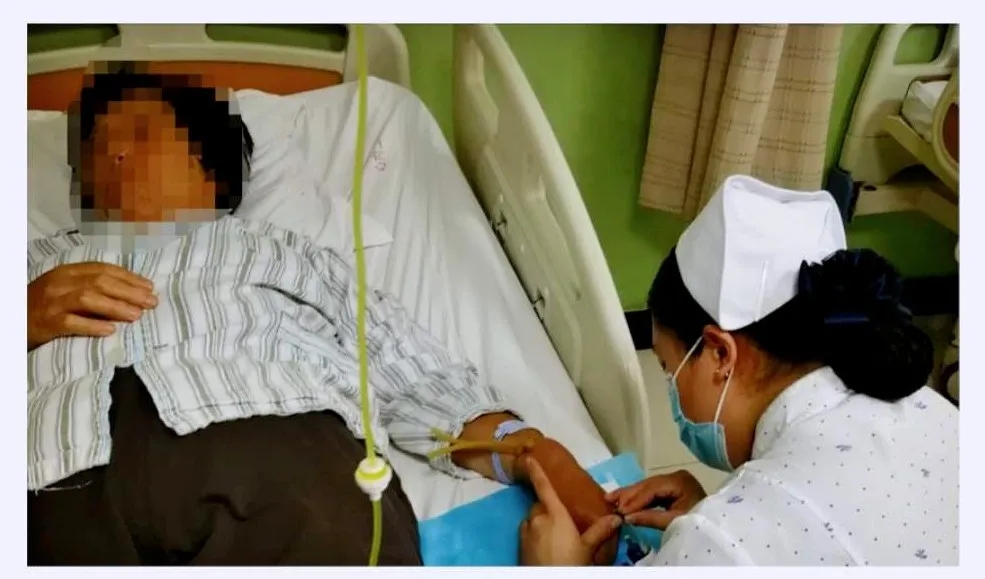 患者第一瓶液体输完了,呼叫铃声此起彼伏,治疗班配置好第二组液体,责任护士进行更换,她们的脚步没有片刻停留,一路马不停蹄,时刻与时间赛跑。