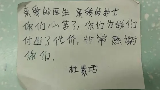 “亲爱的医生,亲爱的护士,你们辛苦了,非常感谢你们”