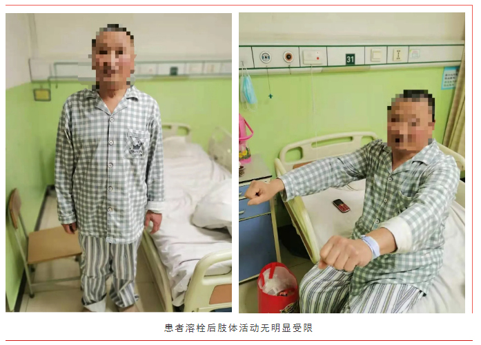 溶栓2小时后查体,患者言语明显好转,左侧上肢可以抬举过头,左下肢可以抬离床面,溶栓效果很好无并发症。