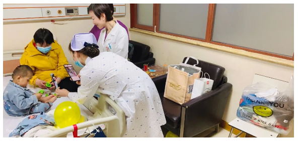 孩子看起来聪明可爱,活泼开朗,被涿州市医院的“临时妈妈”们每天轮流照顾、呵护着,照顾孩子似乎成为了医护人员日常工作的一部分。