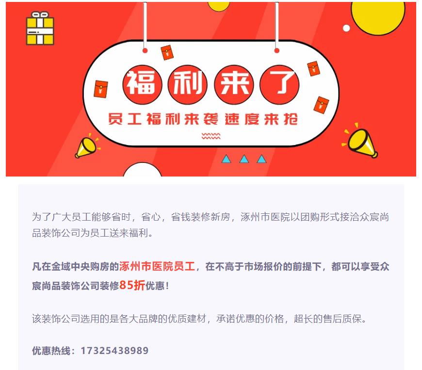 涿州市医院员工速抢福利!
