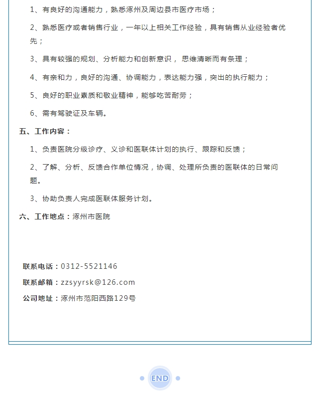 【最新招聘】涿州市医院新媒体运营、摄影师、对外联络部人员招聘启示