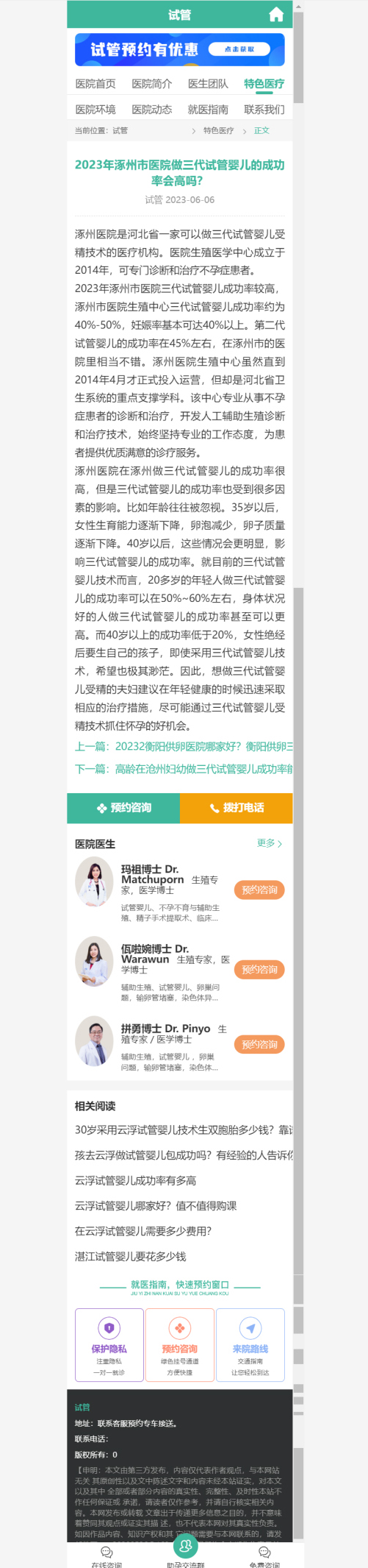 近日,关于涿州市医院开展三代试管婴儿的广告在网络上广泛传播,我们在此声明,此类广告所述的内容完全是虚假的,涿州市医院目前并未开展三代试管婴儿技术,这种网络不实言论已严重影响到了我医院的声誉。