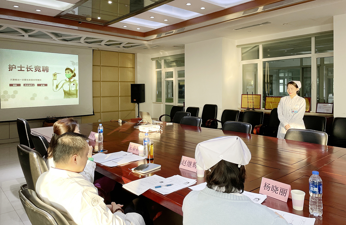 本次护士长岗位竞聘采用竞争上岗的形式在全院范围内选聘,共有34人参加竞聘,竞聘者采用PPT形式根据竞争优势、岗位设想等方面进行了演讲,与评委老师进行问答交流,最终根据分数排名,根据竞聘者的表现和实际工作情况,由主管院长、人事处、护理部、医务科组成的评测组对竞聘者进行打分。